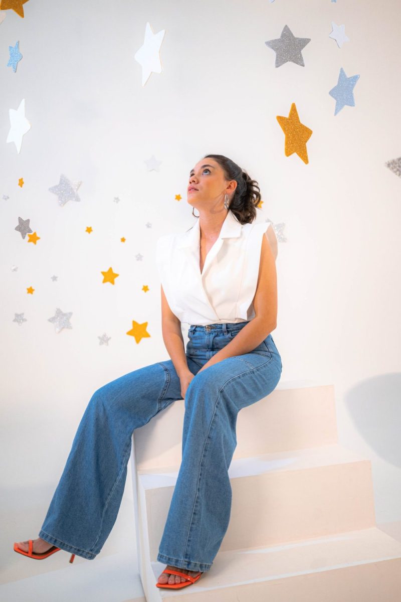 Jean wide leg de tiro alto. Cinco bolsillos.